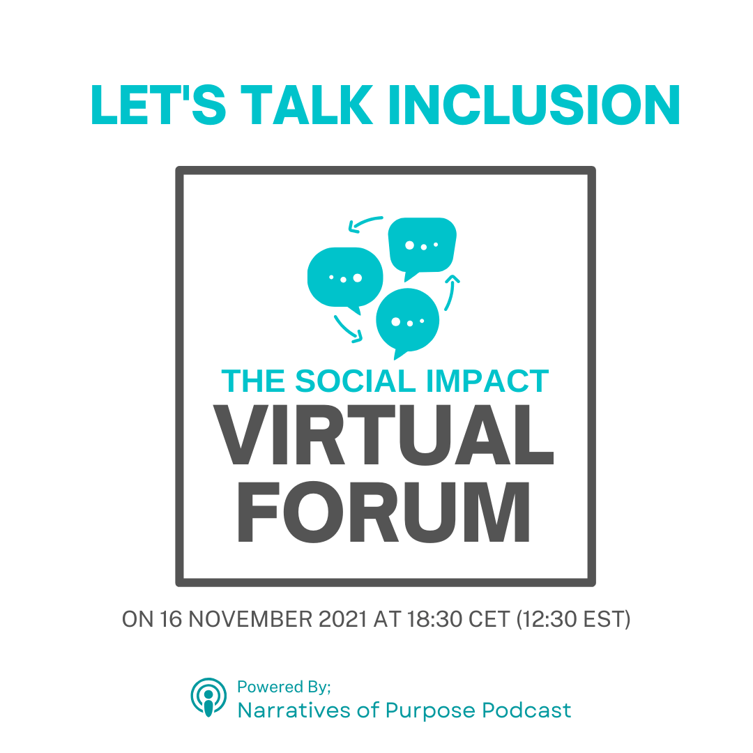 We want to create opportunities for you to EXCHANGE WITH SEVERAL PODCAST GUESTS AROUND ONE TOPIC. You will CONNECT AND INTERACT LIVE WITH THEM during our Social Impact Virtual Forum.